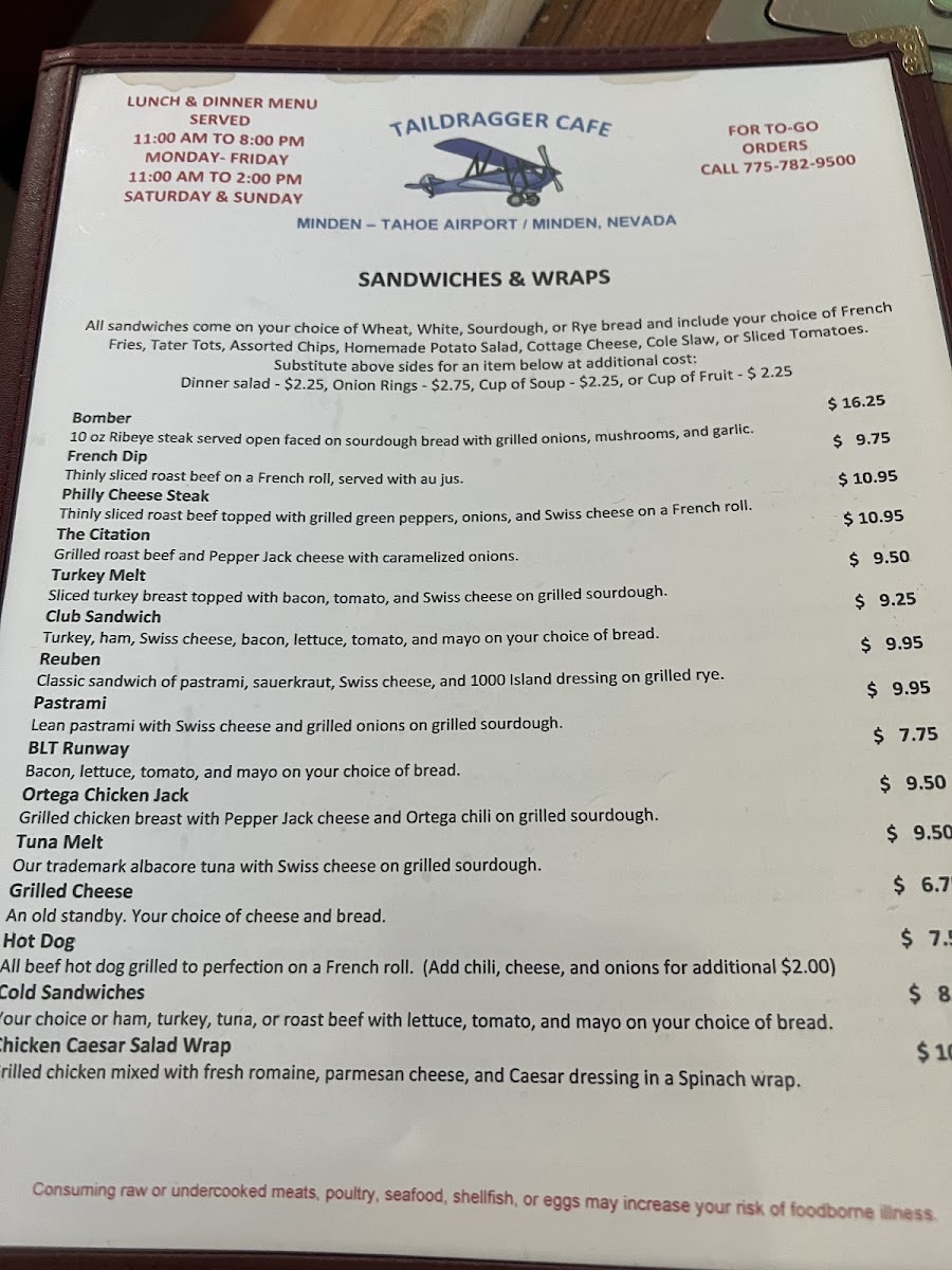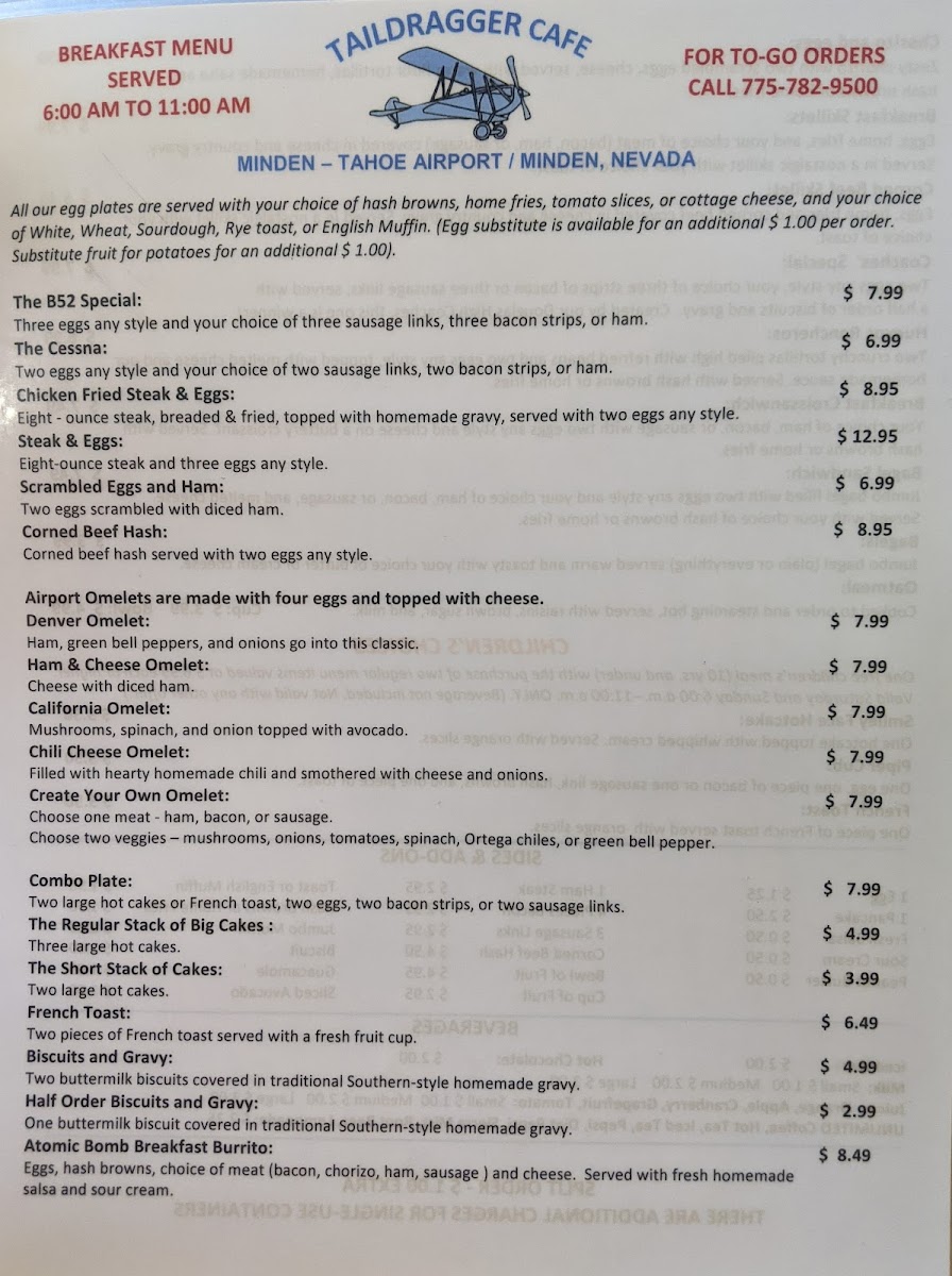 The menu at Taildragger Cafe offers a straightforward, comforting selection of American breakfast and casual dining favorites. Designed for a relaxed yet lively airport setting, the dishes range from hearty morning omelets and classic breakfast plates to satisfying sandwiches and fresh salads.